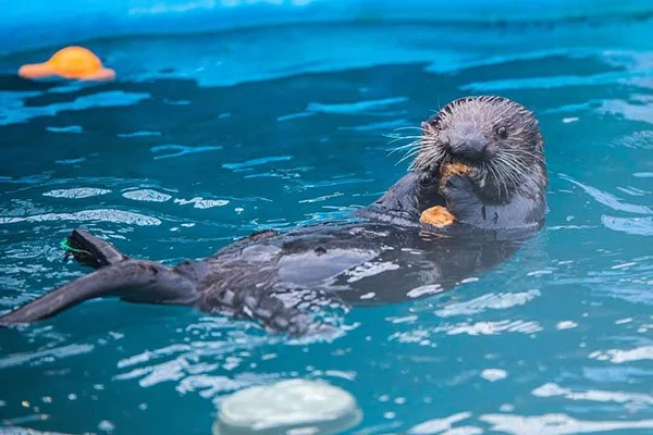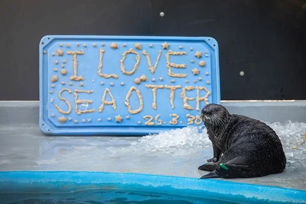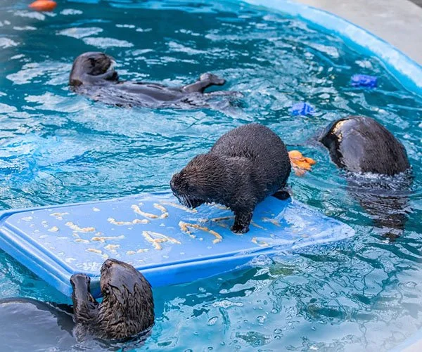 All four otters change their social groups multiple times a day, and on this day all four got to come together for an enrichment party!